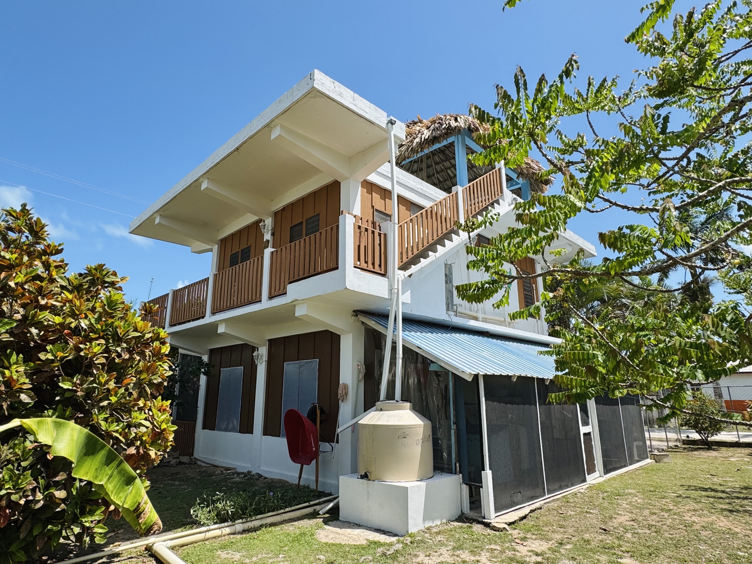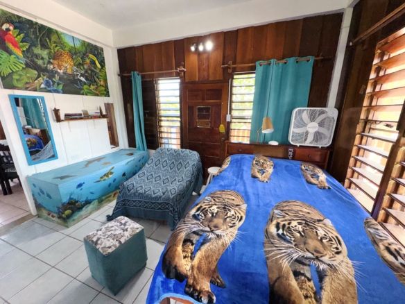 Discover a charming Caribbean-style tropical home in a peaceful seaside village, just a short walking distance from the sea. This unique two-story property with a third-floor terrace offers both comfortable living and excellent income potential.