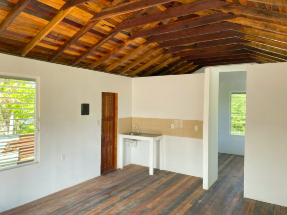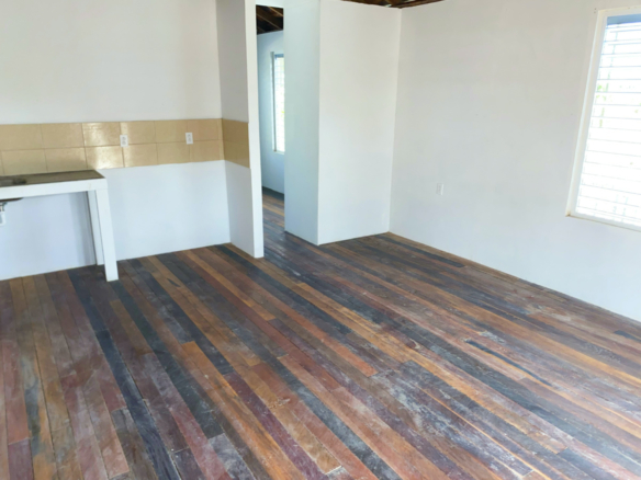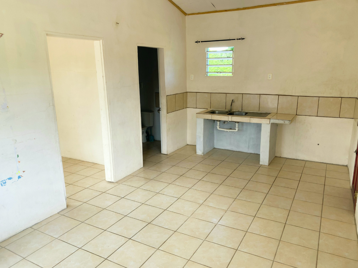 The main house is a one bedroom/ one bath concrete bungalow with zinc roof. The floor space is fully tiled. The windows and doors are wood and allow for plenty of natural sunlight and breeze for a fresh atmosphere. This cozy dwelling is perfect for a small family or as a bachelor’s pad.